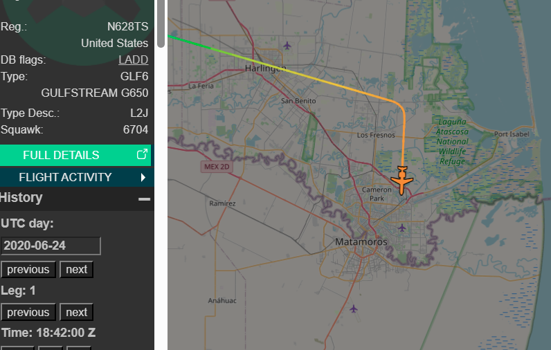 6:26 PM (ET) – Elon’s Jet arrives in Brownsville, TX ✈️