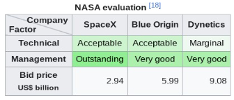 Blue Origin (Bezos) – $579 million (associated with the least schedule risk of the three)