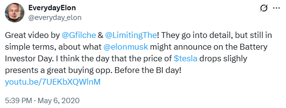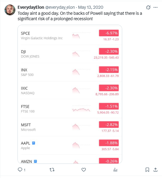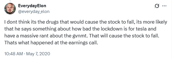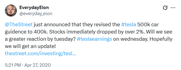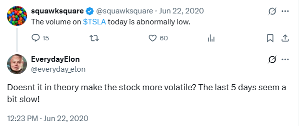 06:04 AM -🥸 EverydayElon observes the stock impact from Musk’s tweets