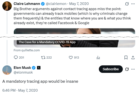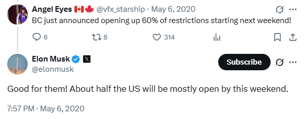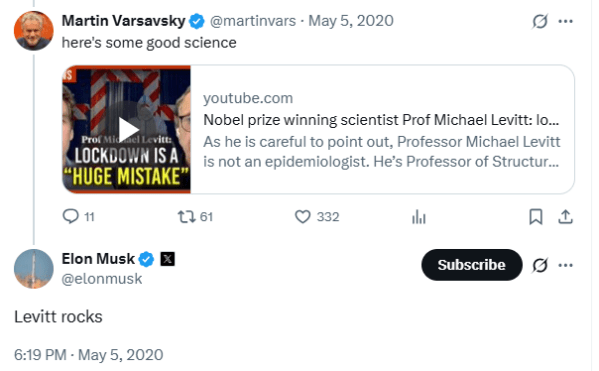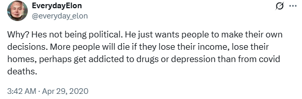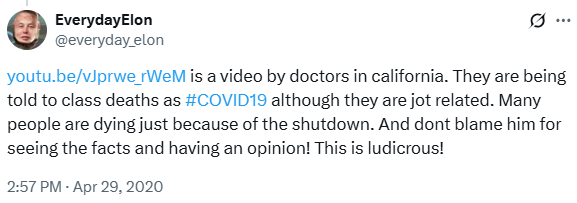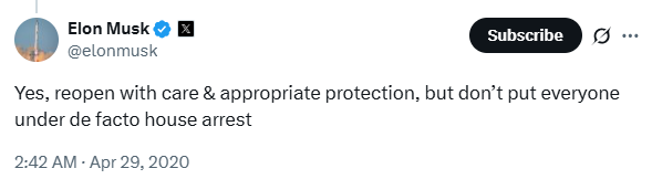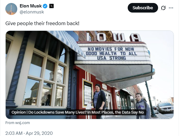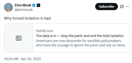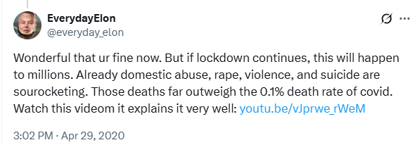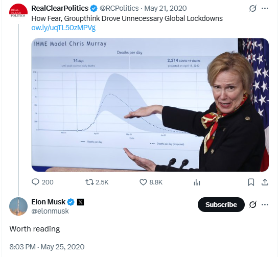 8:03 PM – Musk: “Worth reading”; Fear and Groupthink / ‘unnecessary global lockdowns’