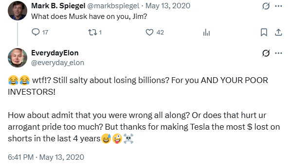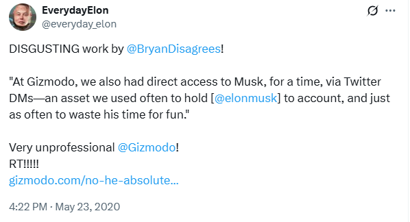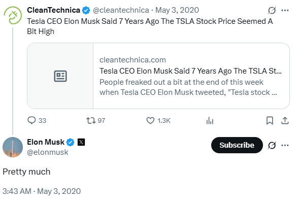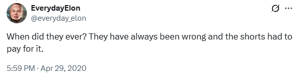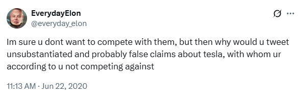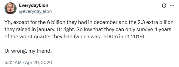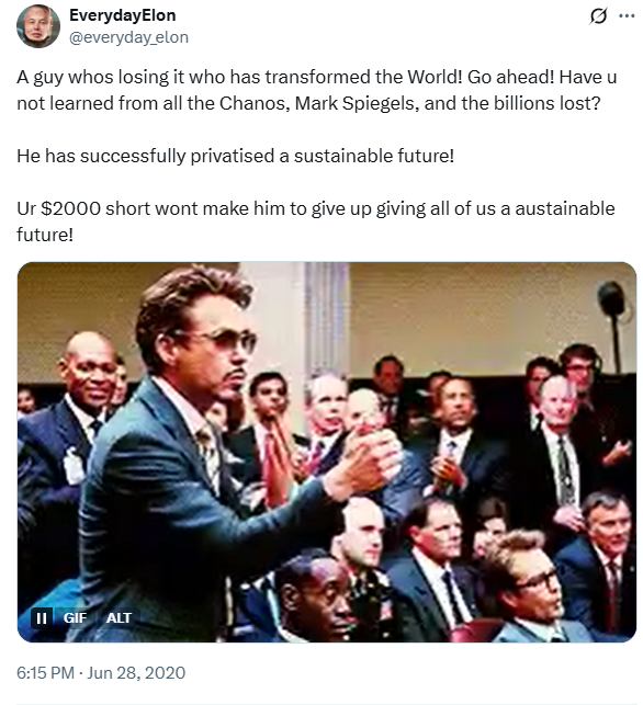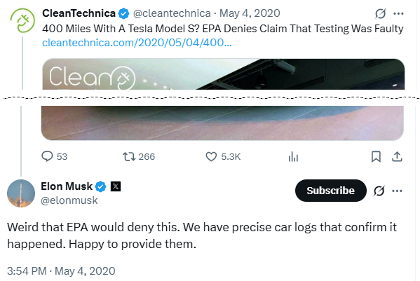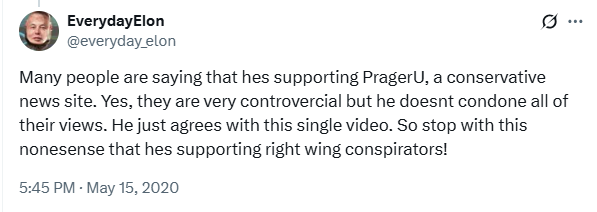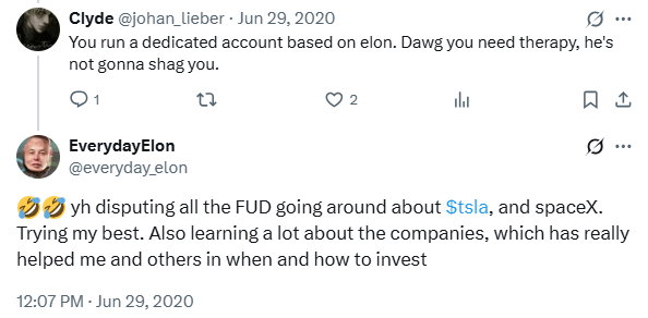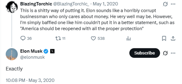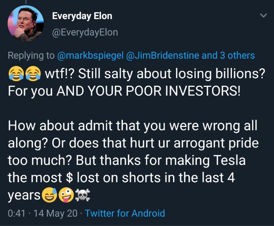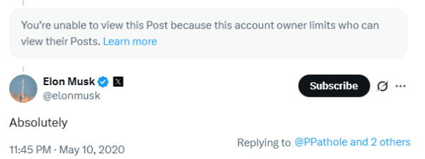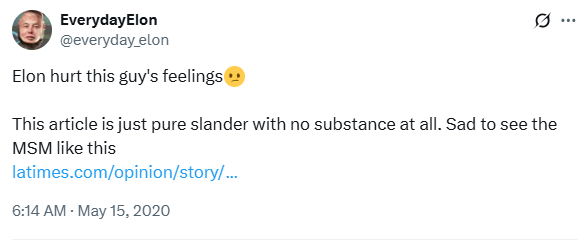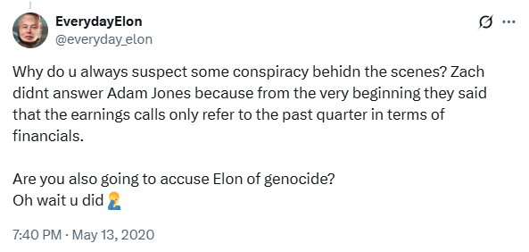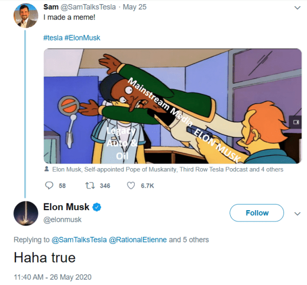 2:40 PM (ET) – “Haha True” re: Mainstream Media’s job of protecting Big Oil from Elon Musk