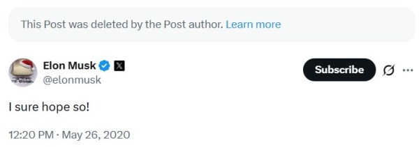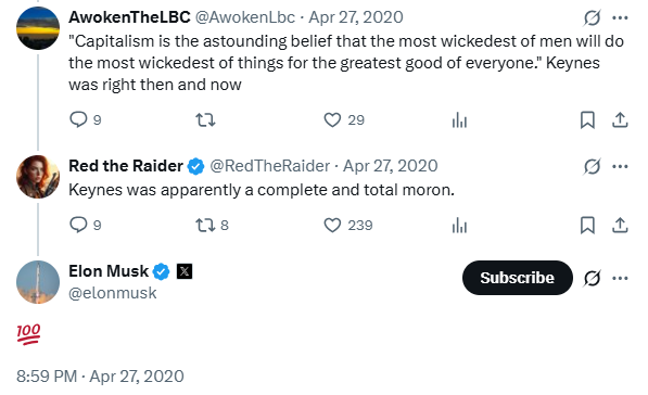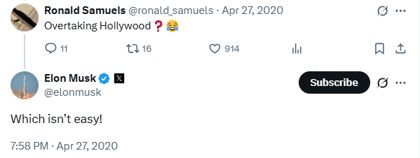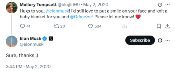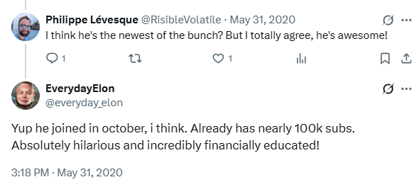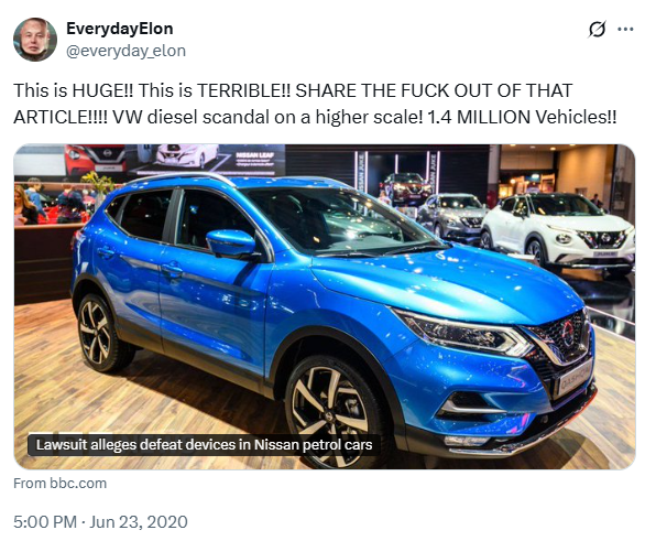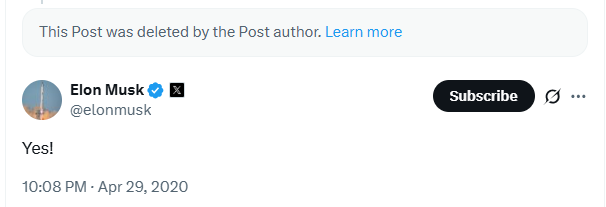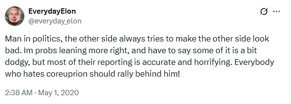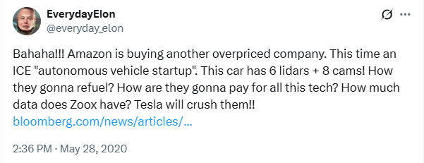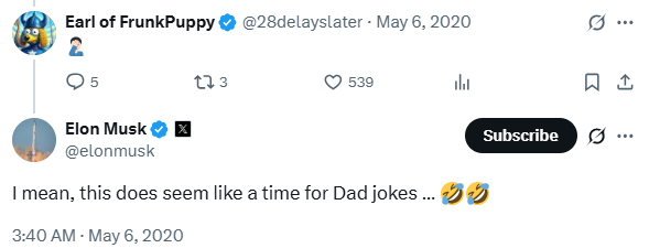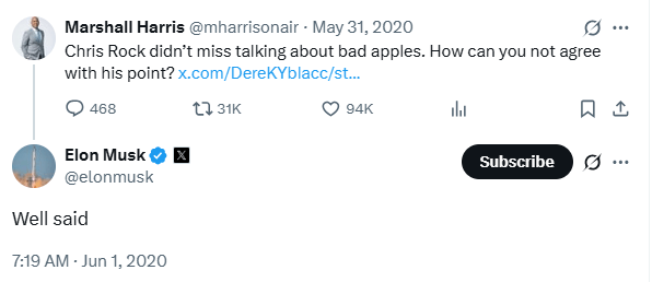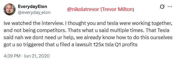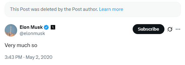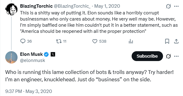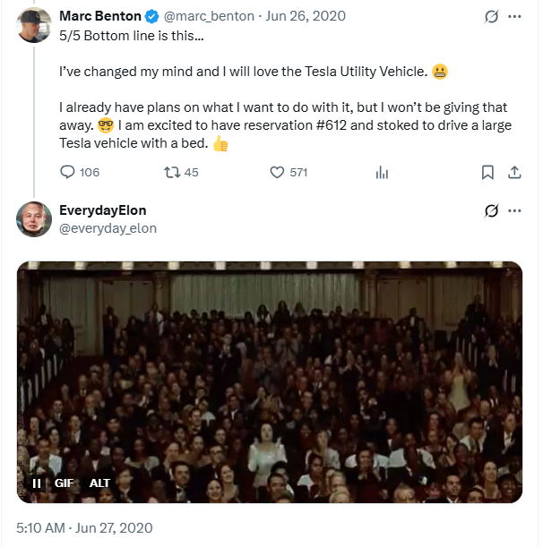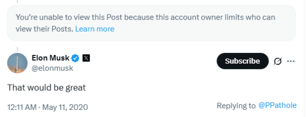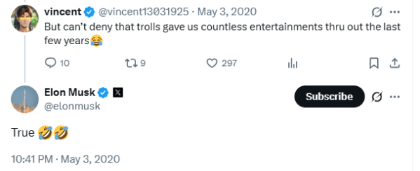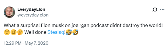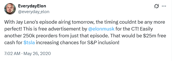 2:40 PM (ET) – “Haha True” re: Mainstream Media’s job of protecting Big Oil from Elon Musk