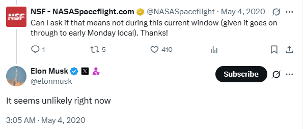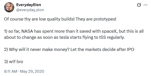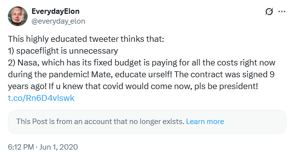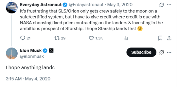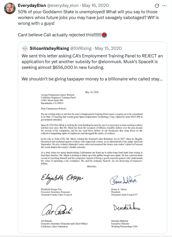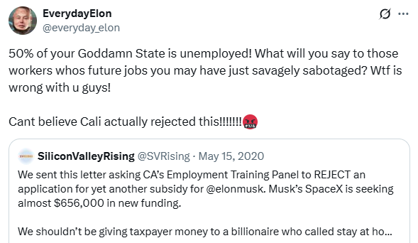 🥸 4:27 PM – EverydayElon furious at SpaceX Subsidy Denial