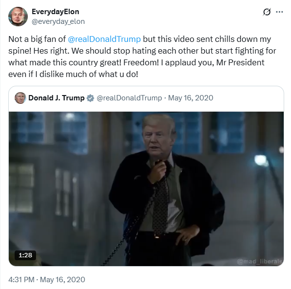 12:20 PM (ET) – Elon Musk can unite the country with positivity
