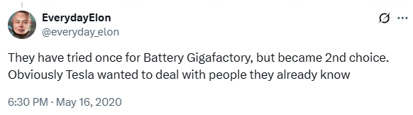 Not all of Tesla though — some operations had to remain if only to remind the state that he’d pull stakes at a moment’s notice if they dared inconvenience his business again.