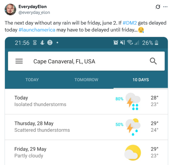 3:40 PM (ET) – Elon’s Jet departs Space Coast, FL ✈️