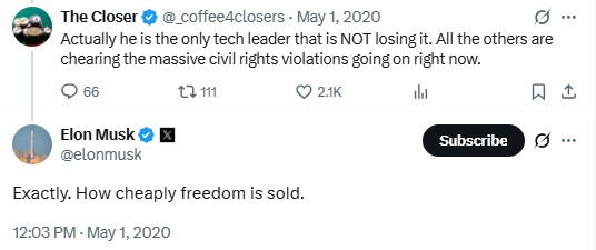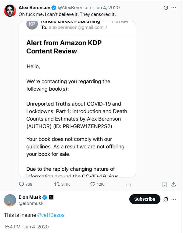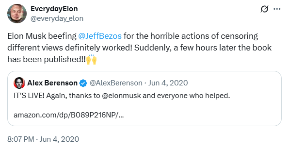1:54 PM – Musk calls out Jeff Bezos for Covid censorship
