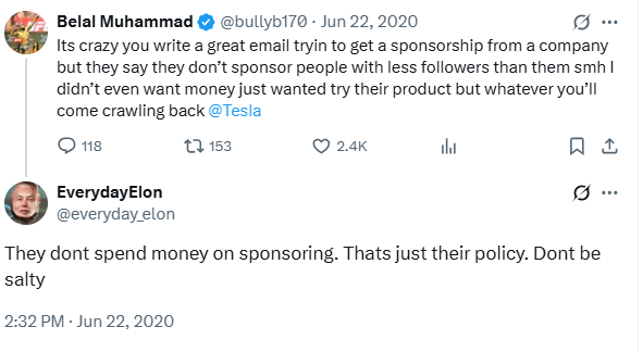EverydayElon doesn’t express any of the surprise or delight Musk fans usually do to get a direct reply from their leader.. but “Mike burner” steps in to give the idea a boost.