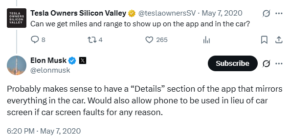 Since acquiring the platform and assembling a team of paid propagandists, Musk has made himself Twitter’s main character every single day. (He didn’t spend $44B to not be.) In 2025, he can always find someone saying exactly what he wants to be said, and reply to it directly — “what a great idea, random poster.”