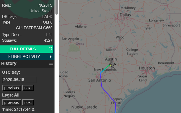 7:30 PM (ET) – Elon’s Jet departs Brownsville, TX ✈️