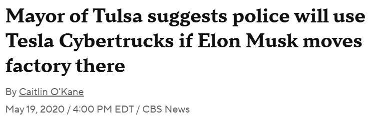 Mayor of Tulsa suggests police will use Cybertrucks if Musk moves factory there