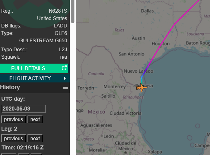 6:44 PM (ET) – Elon’s Jet departs Brownsville, TX ✈️