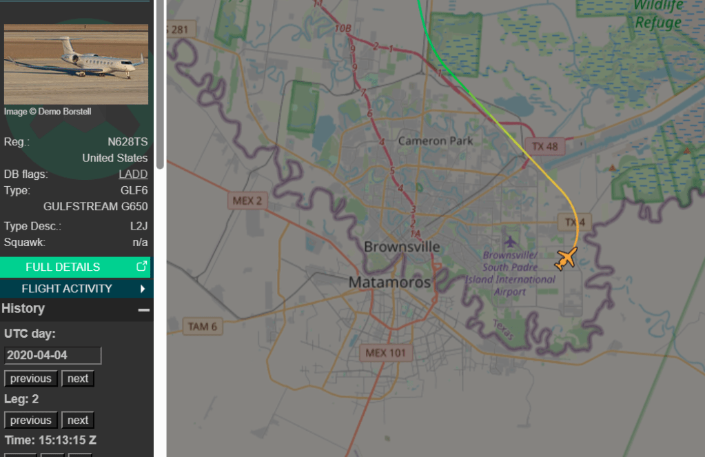 4:31 PM (ET) – Elon’s Jet arrives Brownsville, TX ✈️