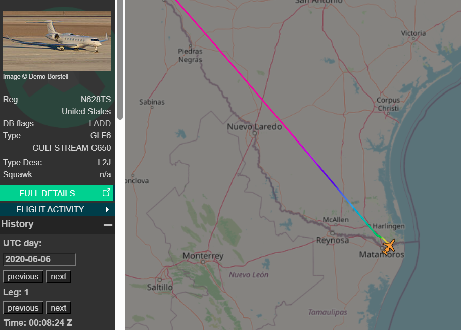 6:26 PM (ET) – Elon’s Jet arrives in Brownsville, TX ✈️