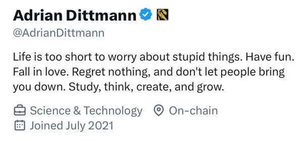 Musk superfan, Adrian Dittmann, posts for the first time from his brand new account at 2:26 AM.