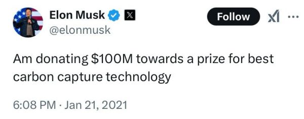 The XPRIZE appears caught off guard by Musk’s tweet announcing the contest, but for a $100 million commitment, they put together a primer on what “Carbon Capture” means.
