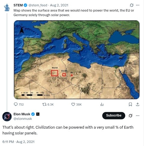 As an example of the small things, and his solar push, he replies with a comment that could’ve been a like or a Retweet.