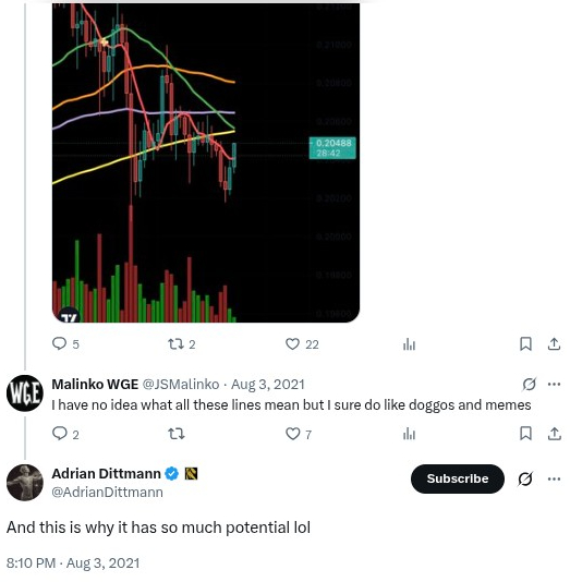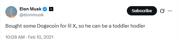 10:08 AM – “Bought some Dogecoin for lil X, so he can be a toddler hodler”