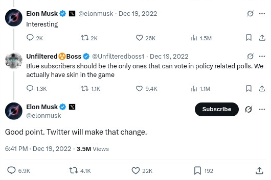 Musk Polls the Audience: Do you like me? Check Yes or No