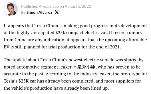 Rumors that a $25,000 Tesla Prototype Completed in China