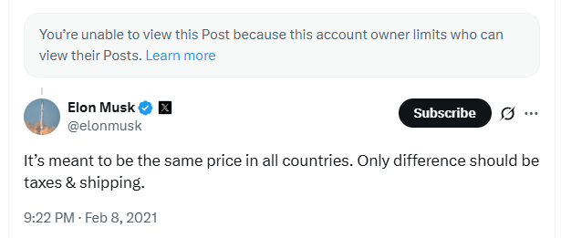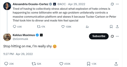 “Your feedback is appreciated, now pay $8”, Musk to AOC