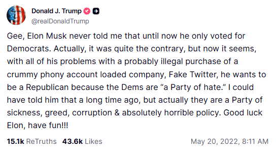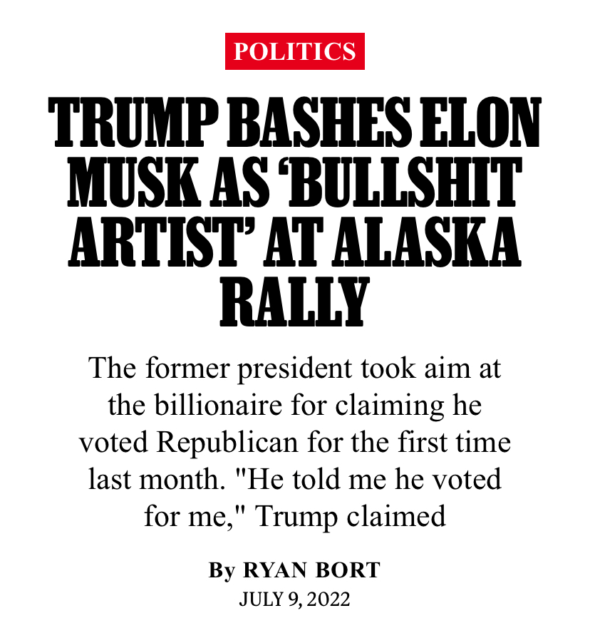 8:11 AM – TRUMP: Shit-talk about Musk & Twitter