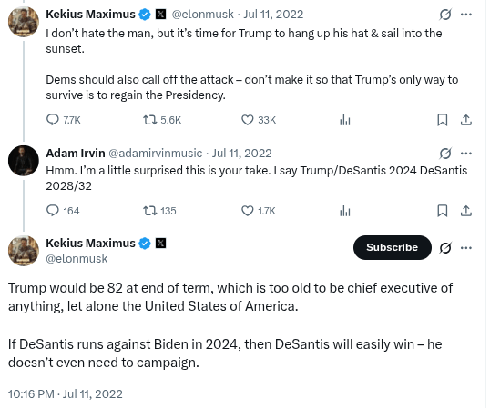 Musk tweets “It’s time for Trump to hang up his hat and sail off into the sunset”