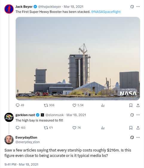 9:41 PM – 🥸 What’s a Starship cost? (EverydayElon)