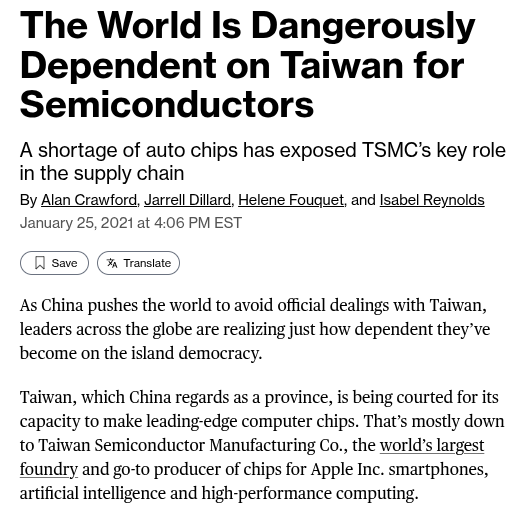 Global shortage reveals “Dangerous Dependence” on Taiwan for Semiconductors