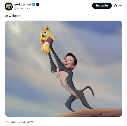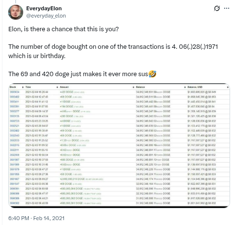 Musk needs more control of Dogecoin + Humble Brag (from EverydayElon)
