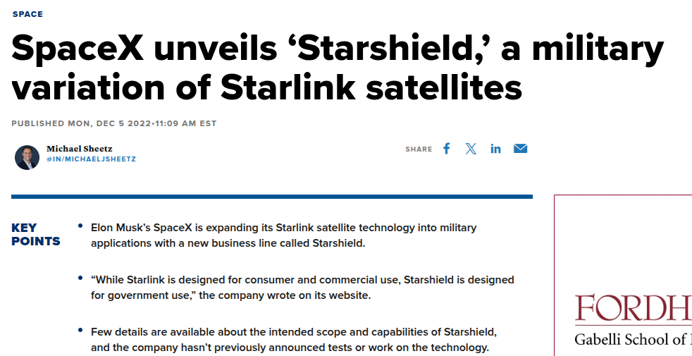 First reported by CNN 10/14/22 – Musk’s SpaceX says it can no longer pay for critical satellite services in Ukraine, asks Pentagon to pick up the tab