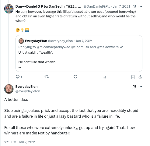 … EverydayElon is there to yell at the losers who think he should be charitable