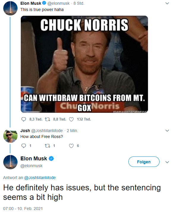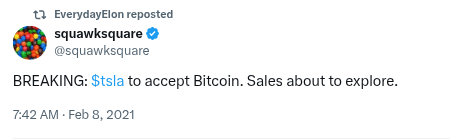 7:42 AM – Tesla to accept Bitcoin (EverydayElon RT)