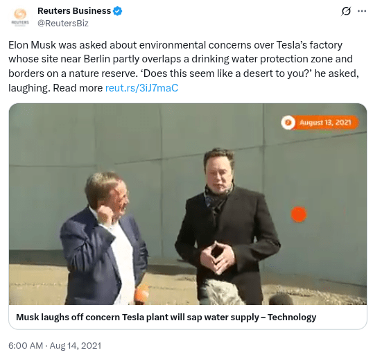 Day 2 of the Biden Administrator, Elon “I make my donations anonymously” Musk, sought to make an over-sized impression with his commitment to green energy.