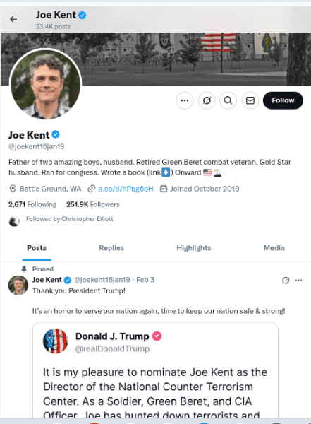 Joe Kent lost his race, but was appointed by Trump in February 2025 to Director of the National Counter Terrorism Center