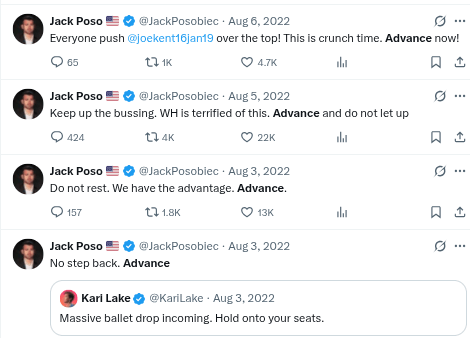 9:43 AM – Jack Posobiec: “We are winning. Do not not let up. Advance”