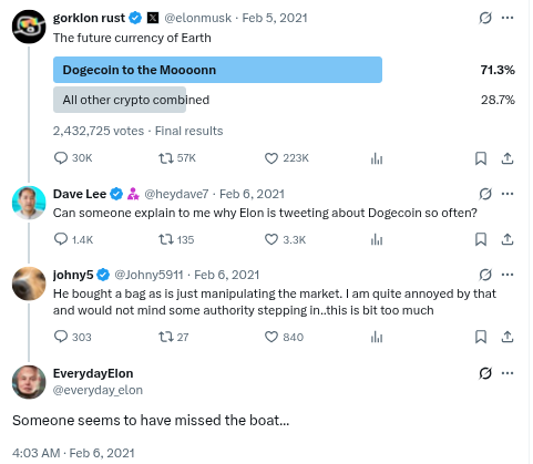 11:51 PM – Musk posts $DOGE Pump Twitter Poll
