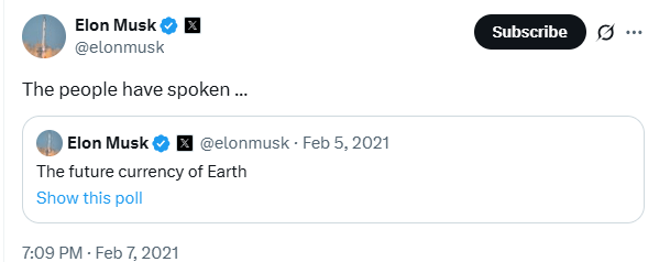 7:09 PM – “The people have spoken…” re: $DOGE Poll