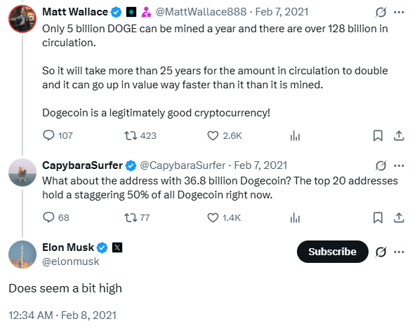 12:34 AM – Top 20 Addresses own 50% of $DOGE