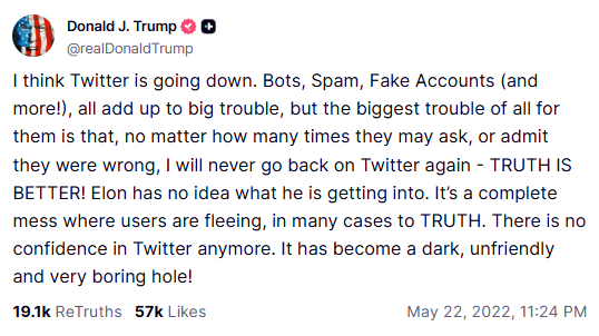 10:52 PM – TRUMP: Shit-talk about Musk & Twitter