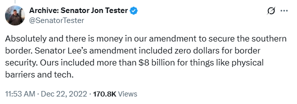 10:59 PM: Spending Bill should be “least amount required through the holidays”