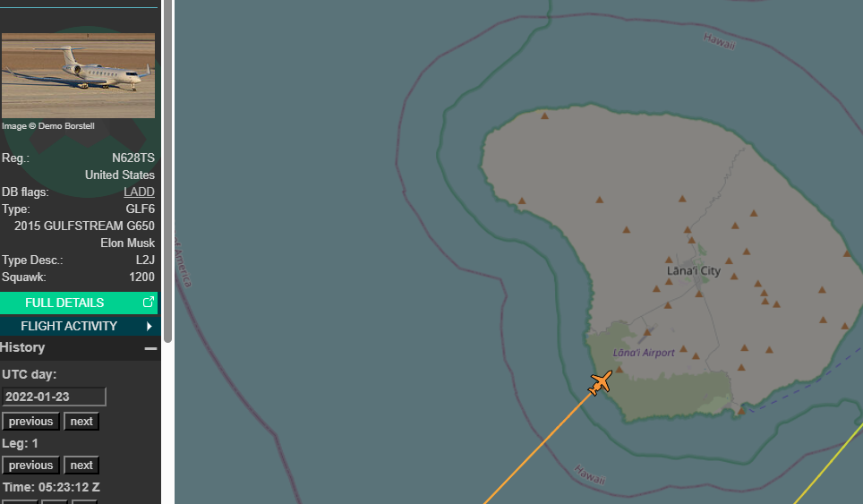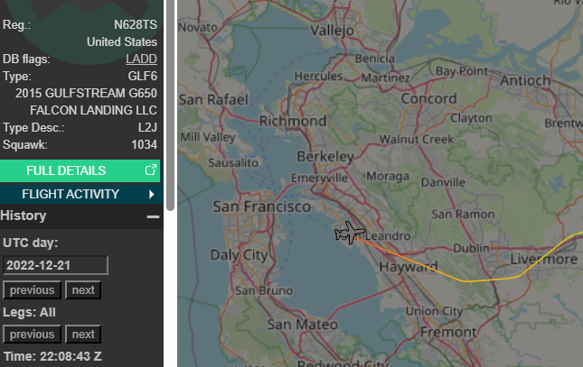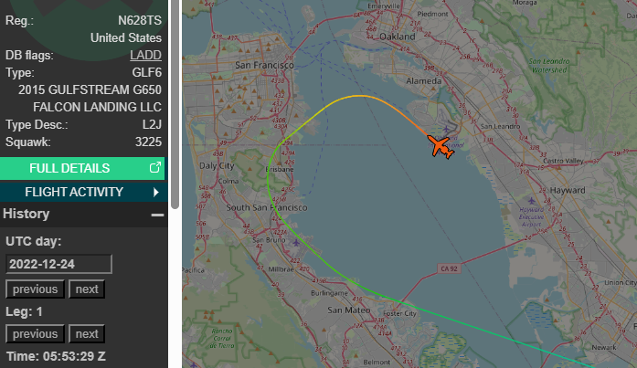 5:08 PM (ET) – Elon’s Jet arrives Oakland, CA ✈️