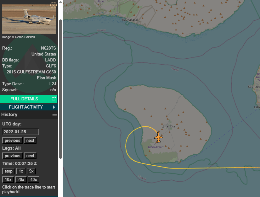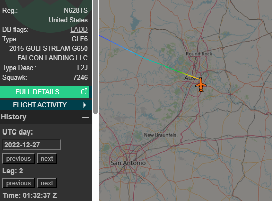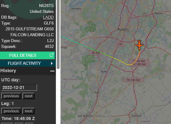 1:45 PM (ET) – Elon’s Jet departs Austin, TX ✈️