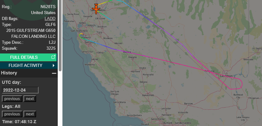 2:48 AM (ET) – Elon’s Jet arrives Sacramento, CA ✈️