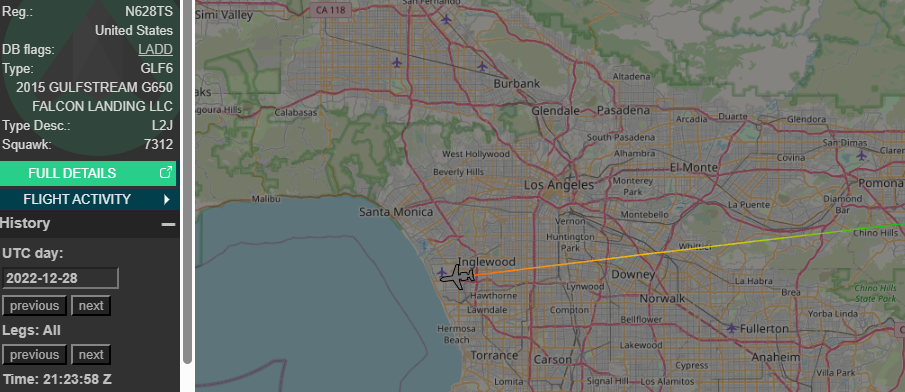 4:23 PM (ET) – Elon’s Jet arrives Los Angeles (LAX) ✈️