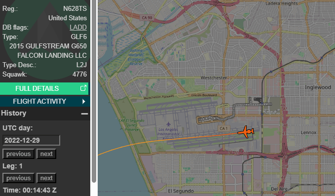 8:14 PM (ET) – Elon’s Jet departs Los Angeles (LAX) ✈️