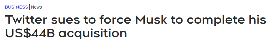 CTV News (Archived) – Twitter sues to force Musk to complete his US $44B Acquistion