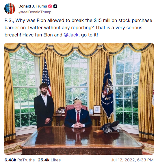 6:33 PM – TRUMP: PS, Dorsey Pic, Musk’s SEC Violation