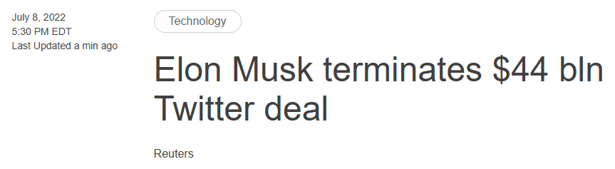 8:14 PM – TRUMP RTs article about how he “called it early” on Musk backing out of Twitter Deal