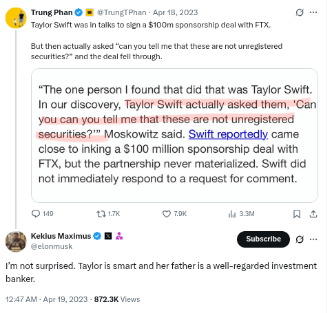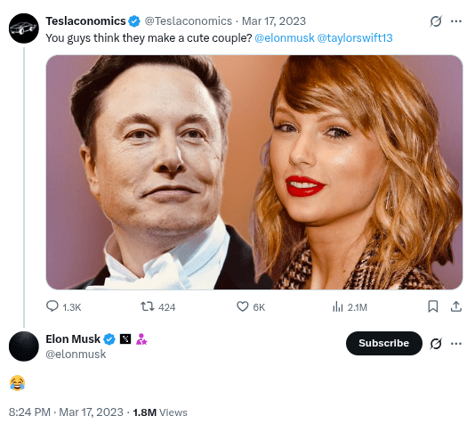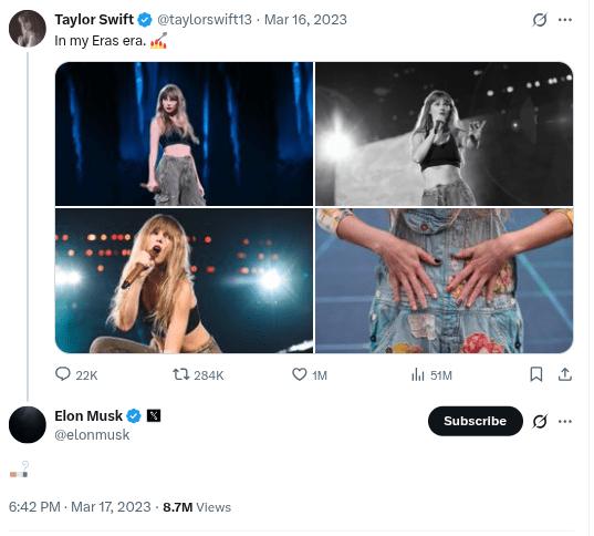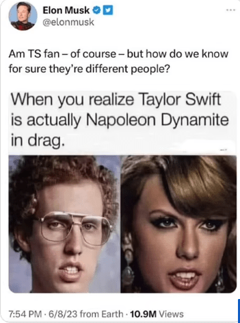 Musk shares Taylor Swift / Napoleon Dynamite meme